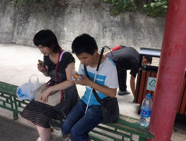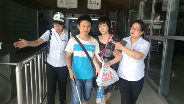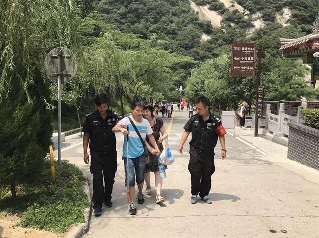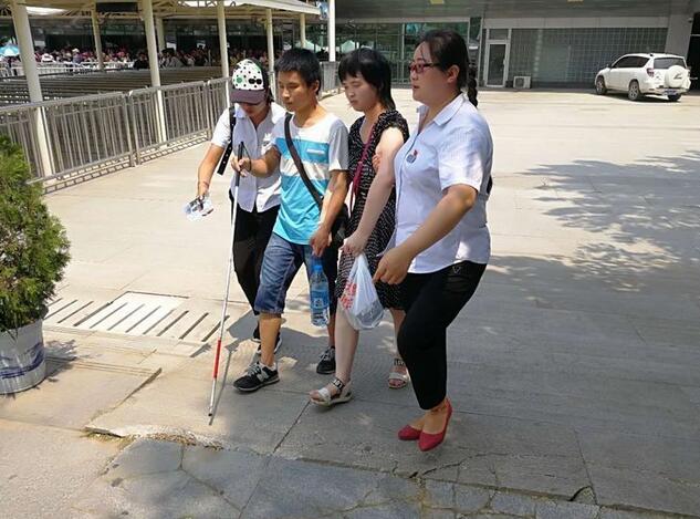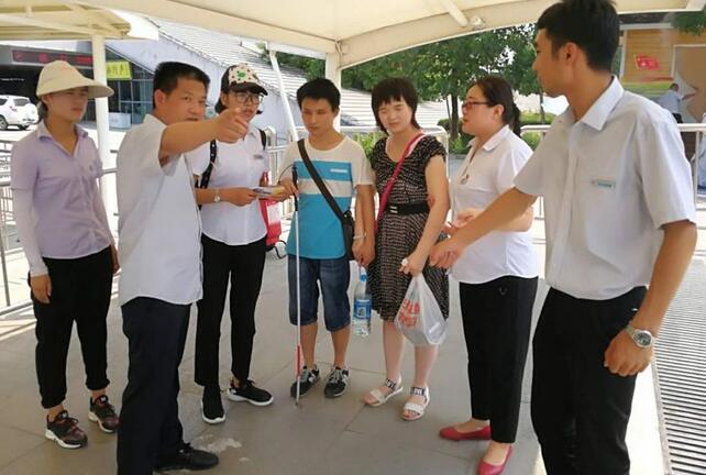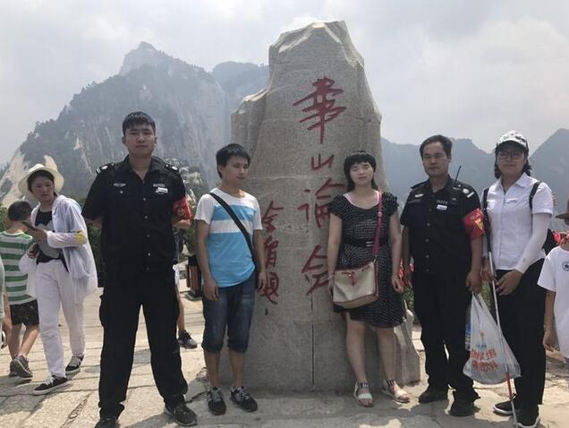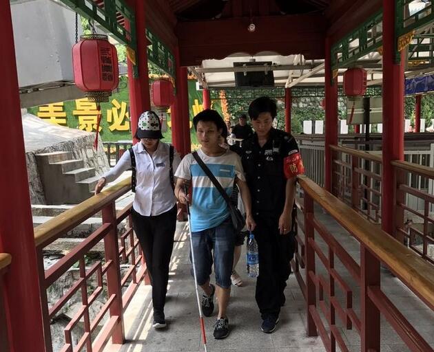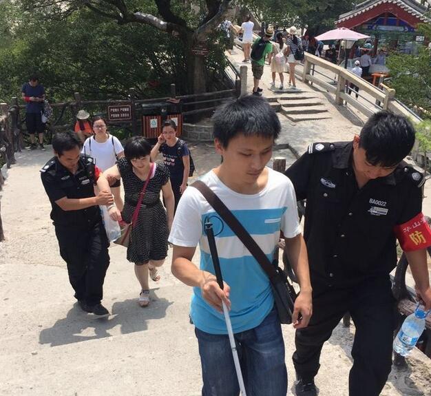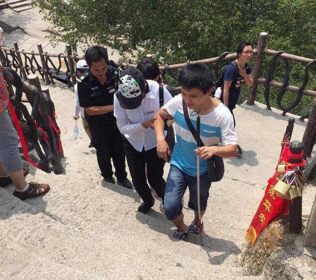 8月5日上午10:57分,华山游客中心咨询台来了两位盲人游客,询问华山是否有无障碍通道,经了解两位盲人并无家人陪同,为了游客的安全着想,工作人员耐心劝阻游客不要上山,但游客坚持一定要上山。情况特殊,立即将此情况上报,管理公司领导指示:安排一名讲解员全程陪同、照顾游客,沿路各管理站全力做好游客安全登山保障工作。