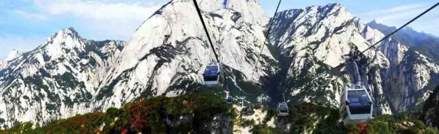 西峰索道采取崖壁开凿硐室站房、W式起伏式走向,运行的时候十分平稳,而且景色很优美,尤其是过了第一个山峰后,突然出现在眼前的是西峰的壮丽景色,好震憾。