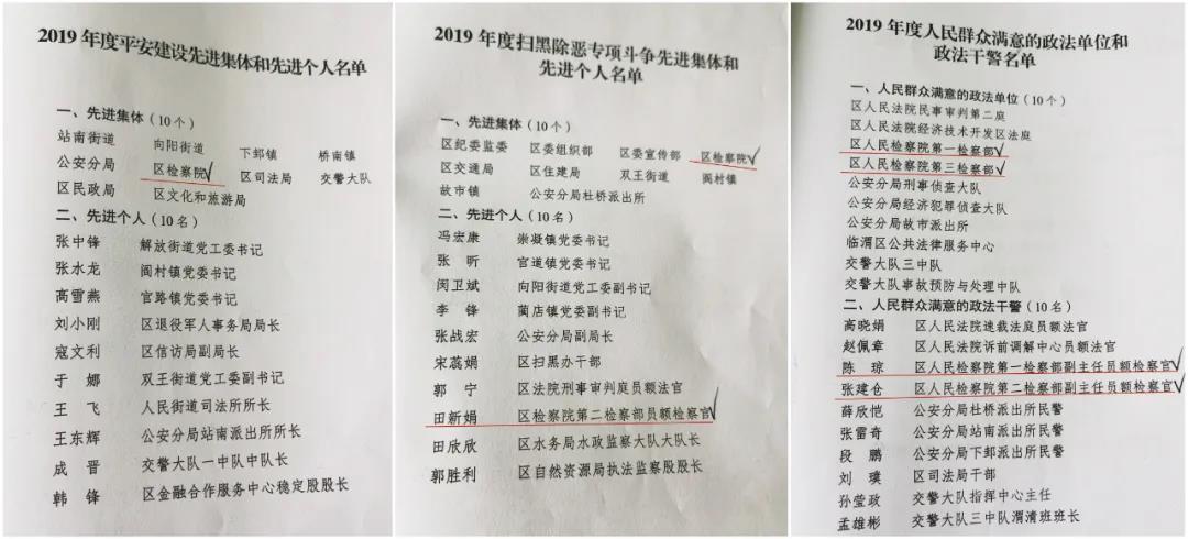 临渭区人民检察院第一检察部和第三检察部被中共渭南市临渭区委区政府评为“人民群众满意的政法单位