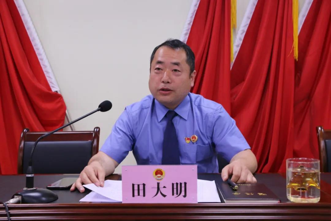 会议由该院党组成员、副检察长田大明主持,全体检察干警及聘任的检风检纪监督员参会,会议邀请了区纪委派驻法院纪检监察组组长杨安武参加。
