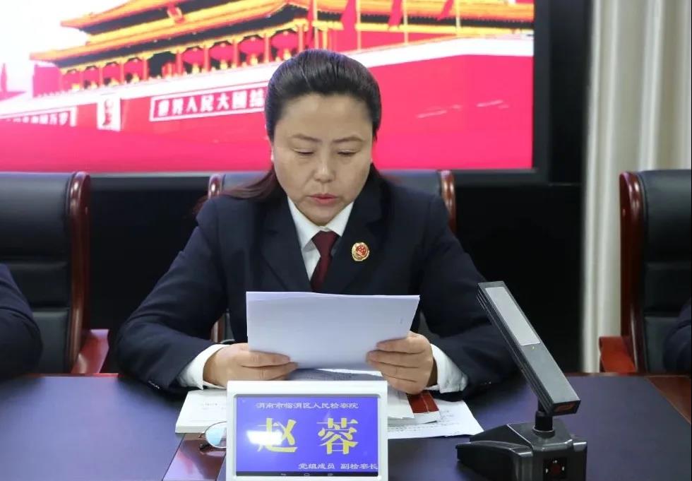 党组成员、副检察长赵蓉宣读《临渭区人民检察院关于在队伍教育整顿中开展“我为群众办实事”实践活动的安排意见》