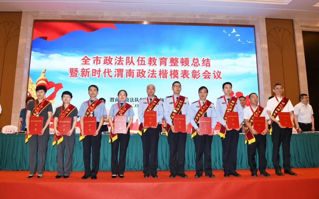 6月24日,渭南市政法队伍教育整顿领导小组召开全市政法队伍教育整顿总结暨新时代渭南政法楷模表彰会议,授予陈力等4名同志“新时代渭南政法楷模”荣誉称号,授予李彩玉等9名同志“新时代渭南政法标兵”荣誉称号,授予袁烨等11名同志“新时代渭南政法工作先进个人”荣誉称号。
