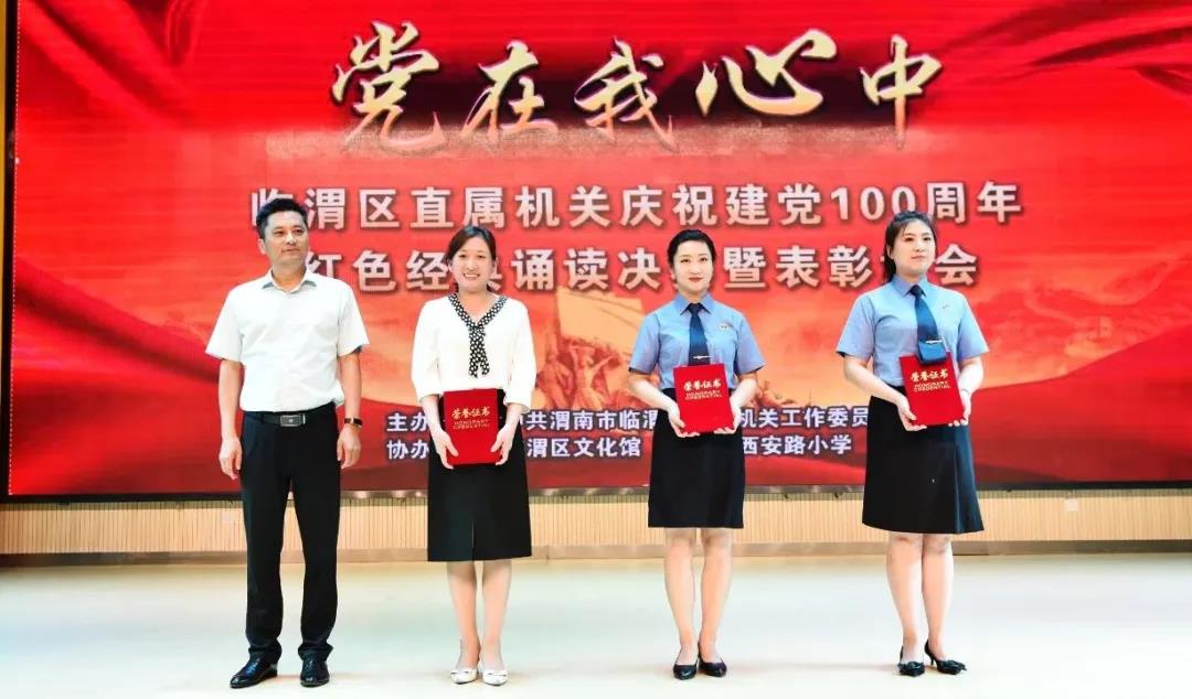 本网讯(张玉婵 张 峰)为庆祝中国共产党建党100周年,充分发挥党员干部先进典型表率示范作用,进一步增强党组织的凝聚力和战斗力,以奋发有为的实际行动为党旗增辉添彩,6月25日,区直机关工委举办“党在我心中”红色经典诵读活动决赛暨表彰大会。区检察院选送红色经典诵读节目《光的赞歌》《永远的九岁》以出色的表现脱颖而出,赢得一致好评,均获三等奖。该院第三党支部荣获“先进基层党组织”,魏莉同志荣获“优秀党务工作者”,张燕、张晨同志荣获“优秀共产党员”。