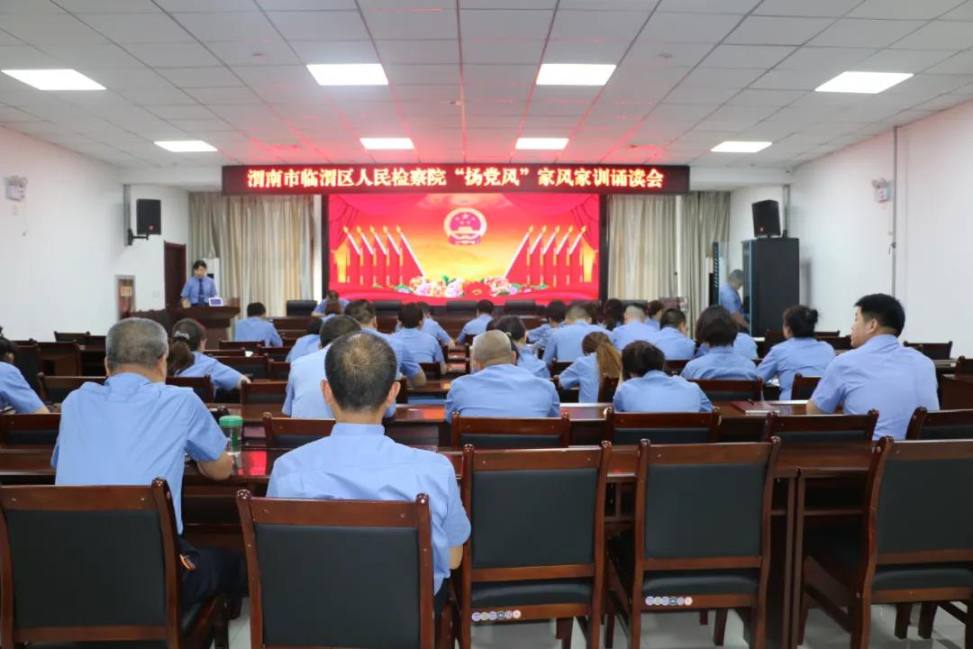 本网讯 【李嘉愉 李佳佳 张 峰】为庆祝中国共产党成立100周年,引领广大干警继承党的光荣传统,弘扬党的优良作风,进一步增强听党话、感党恩、跟党走的思想自觉和行动自觉,6月29日,临渭区人民检察院举办“扬党风”家风家训诵读会,干警深情诵读红色家书,真情讲述革命先辈家国情怀家风故事。