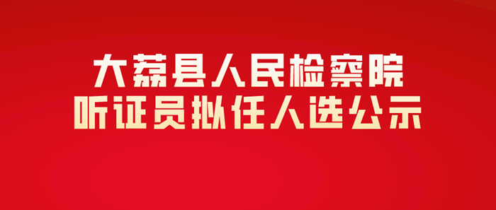 根据最高人民检察院《人民检察院听证员库建设管理指导意见》和《大荔县人民检察院关于选任听证员的公告》有关规定,现将拟任大荔县人民检察院听证员名单予以公示(名单见附表)。公示期为2022年9月16日至9月22日。如有异议,请于9月22日前向大荔县人民检察院反映。