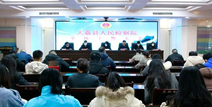 本网讯(大荔检察)1月9日,大荔县人民检察院召开全体干警大会,传达学习习近平总书记对政法工作作出的重要指示和全国检察长会议精神,并结合大荔检察工作实际,就如何贯彻落实作出安排部署。