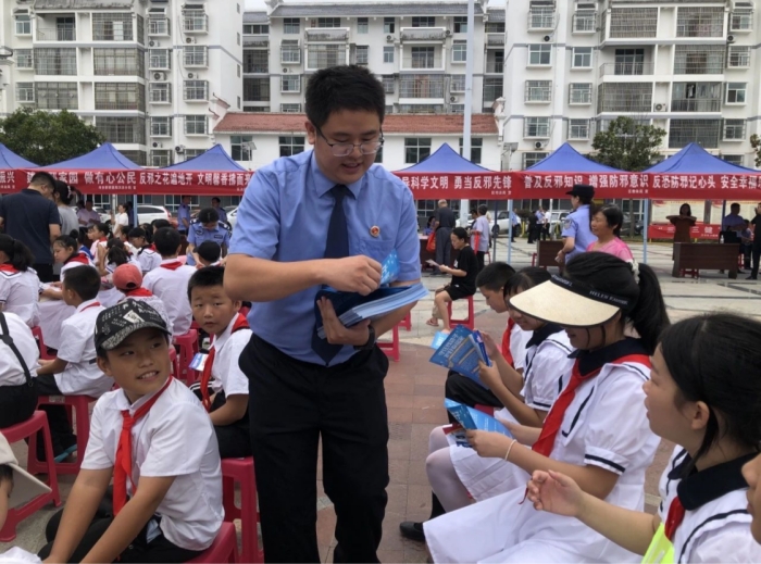 本网讯(赵娜 王娅婷 张晓峰)为贯彻落实党中央关于维护国家政治安全重要指示精神,深入揭露邪教的本质和危害,进一步提升和增强广大群众对邪教的辨识能力和抵御能力,加强诉源治理和防范邪教侵蚀,营造文明和谐的社会环境。近日,汉滨区人民检察院积极参与由区委政法委牵头组织开展的反邪教警示教育进乡村宣传活动。