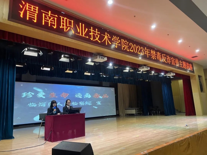本网讯(王 猛 宋梦元 张 峰)为了进一步加强青少年群体对毒品危害的认识和自觉抵制远离毒品的意识,11月29日,临渭区人民检察院干警走进渭南职业技术学院,给在校师生进行了一次禁毒普法宣传讲座。