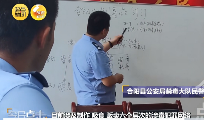 专案组循着“瞎子”的供述,继续深挖扩线,接连打掉了贩卖“汀汀”的两级犯罪网络,抓获贩毒嫌疑人5名。经研判,该5名犯罪嫌疑人依然是这条贩毒链条上的“二道贩子”,并没有打到制毒源头。为彻底摧毁这一贩毒链条,专案组层层追查,通过信息流、资金流分析,一张涉及吸制贩6个层级的涉毒犯罪网络逐渐清晰起来。他们有的负责提供咖啡因原料,有的负责提供制作场地,有的负责二次加工,有的负责联系下线吸毒人员,团伙成员相对固定,分工明确,资金来往密切。为确保将涉案人员一网打尽,合阳警方迅速将案情向上级公安机关报告,在省市公安机关支持下,合阳警方协同山西、河南等地警方同时实施抓捕,再次抓获制贩毒人员7名,捣毁制毒工厂1个,收缴大量制毒原材料。