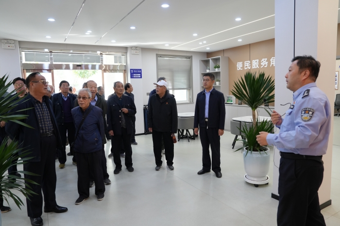 最后一站,老同志们来到了全国首批枫桥式公安派出所——金水派出所进行参观,所长王京红围绕“百千工程”开展情况,以“大力践行新时代枫桥经验”为主线,向老同志们详细介绍了派出所升级改造情况,并带领老干部们实地察看了派出所综合指挥室、暖心警务会客角、荣誉室等,并就今年以来派出所取得的各项成绩进行了详细的分享汇报,让全体老同志切身感受到了基层公安派出所蓬勃向上的新气象和新面貌。