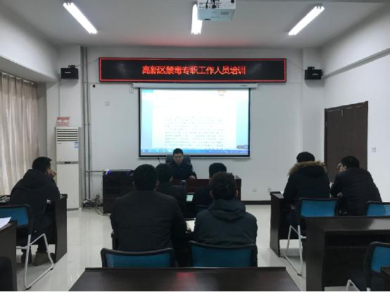本网讯 [燕子] 根据市禁毒委的工作要求,2019年1月7日,高新区禁毒办对招录的10名禁毒专职工作人员进行岗前培训,此次培训参加人员有高新区禁毒办主任、高新公安分局副局长王涛同志、区禁毒办常务副主任、高新公安分局刑侦大队大队长马宏运同志及区禁毒办副主任、高新公安分局刑侦大队副大队长金小平同志,大会由区禁毒办常务副主任马宏运同志主持。