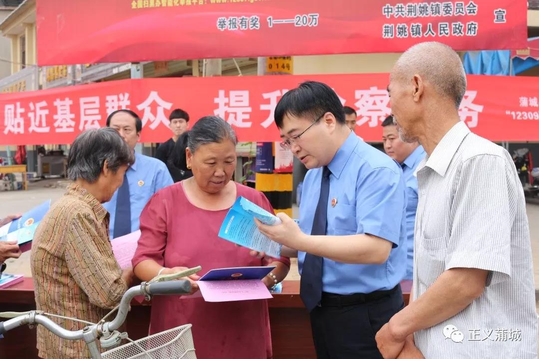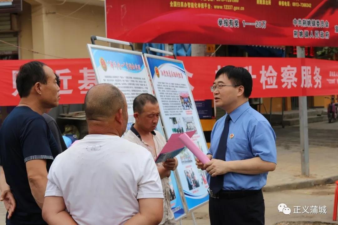 本网讯 ( 刘媛 李胜合)为贯彻落实陕西省人民检察院《关于开展全省检察机关“12309检察服务宣传周”活动的通知》的要求,6月19日,蒲城县人民检察院深入蒲城县荆姚镇街道开展“贴近基层群众,提升检察服务”为主题的宣传活动。蒲城县人民检察院党组书记、检察长闫永江,党组成员、副检察长刘建明,诉讼监督部副部长李瑞及相关干警参加活动。