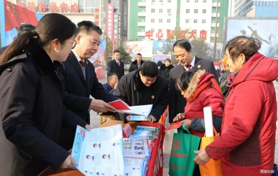 本网讯 (渭 检)12月4日上午, 渭南市人民检察院组织多名检察干警在中心广场参加以“弘扬宪法精神,推进国家治理体系和治理能力现代化“为主题的宪法宣传活动,现场摆放大型宣传图板,检察干警们认真解答群众提出的法律疑难问题,听取群众的申诉,征求群众对检察工作的意见和建议,现场向群众发放宣传材料。渭南市人民检察院党组书记、检察长李逸强到现场与干警们一同开展宣传活动。