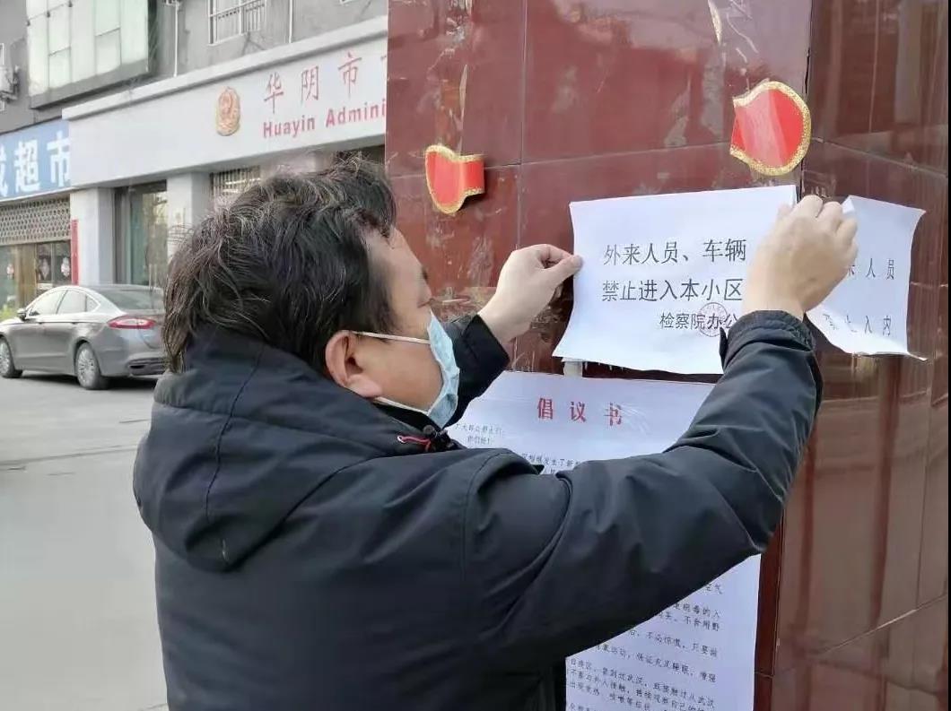 在疫情防护的关键时刻,华阴市检察院全体干警上下一心、团结一致,以坚决的态度、最快的速度积极投身到疫情防控的各项工作上,为坚决遏制疫情扩散,打赢疫情防控阻击战贡献检察力量。