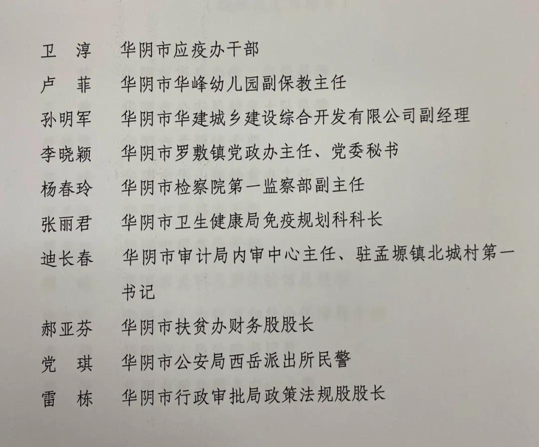 第三届“华阴好青年提名奖”拟表彰人选名单